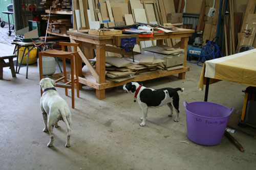工房のもう一つの顔。 トレイシーの愛犬、オットーとパンザ。