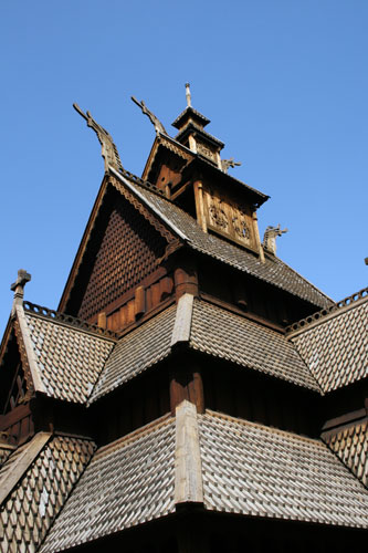 ノルウェーでももうほとんど残っていない、バイキングの影響を受けた様式です。 軒先から突き出ている飾りがチャーミング。 船のようで、今にも動き出しそうでした。 教会というより、日本の天守閣にも似た雰囲気です。