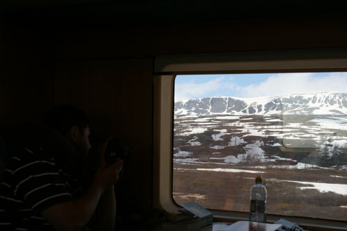 13時過ぎ ミュダール着。 うそのように雪がなくなっていました。 さすがに車掌さんの半そではやりすぎな気がしますが・・・。 とりあえず凍死の危機は免れたようです。