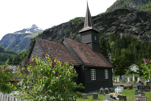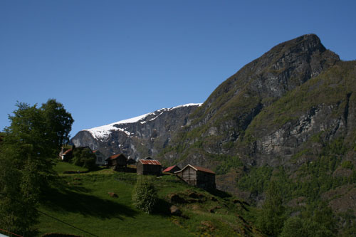 村へは、冬場どうしているのかと思うような急な坂道を登っていきます。 オスロの民族博物館で見たような古い農家が崖ぎりぎりに立っていました。