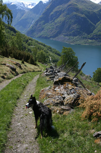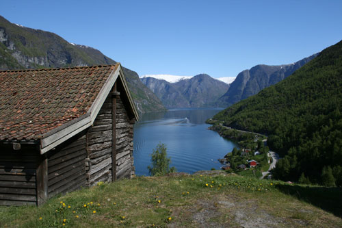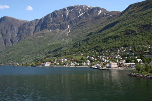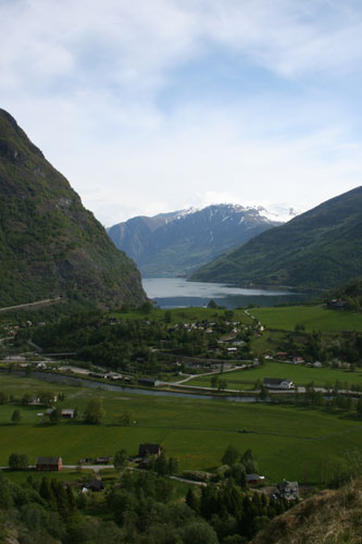 元の道に戻って、ひらすらフィヨルド沿いを歩くこと2時間、Aurlandに到着しました。 フロムよりは大きな町。 少し場所が違うだけでフィヨルドの見え方がずいぶん違っておもしろいです。