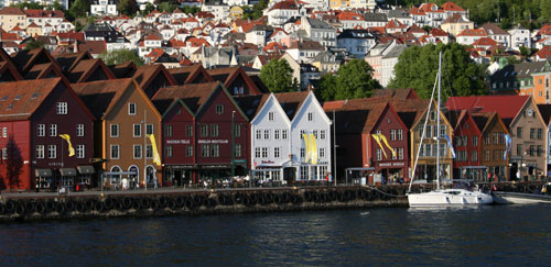 午後9時前、有名なブリッゲンの建物の前を通ってようやくベルゲンに到着。