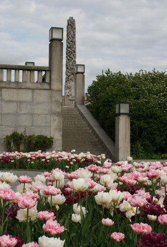 オスロ観光1日目はまず、フログネル公園(ヴィーゲラン公園)に向かいました。 あさ9時ですでに観光客(特にアジアからの団体ツアーと小学校の遠足)で込み合っていました。