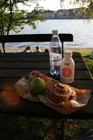 夕食はユースホステルの前の公園で、ガムラ・スタン(旧市街)を眺めながら。
