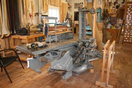 工房の中。 こちらは御年55才の機械。 専門的な話ですが、手押し鉋・一面鉋盤、昇降盤、チップソー、ホゾ取り盤が一緒になった、何とも恐ろしい万能機でした。 一面盤なんて下側が削れるんですっ、しかも手で押し込む式!(←わかる人は解ると思いますが、使うのめちゃくちゃ怖かったです。)